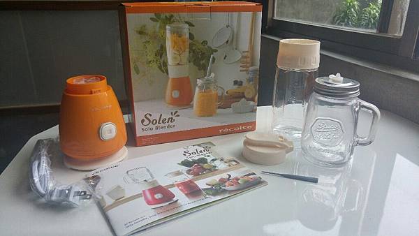 這系列的果汁機有三種顏色:蘋果紅、沁橙橘、樂活綠,顏色非常適合夏天。每機配上兩個不同款的杯子跟蓋子:有耳玻璃瓶(300ml)+塑膠隨行杯,隨行杯蓋(400ml)+飲用杯蓋(可插吸管)。4個配件可以隨你的需求而變化組合,當初就是被它這麼貼心的設計而燒到了!