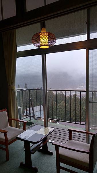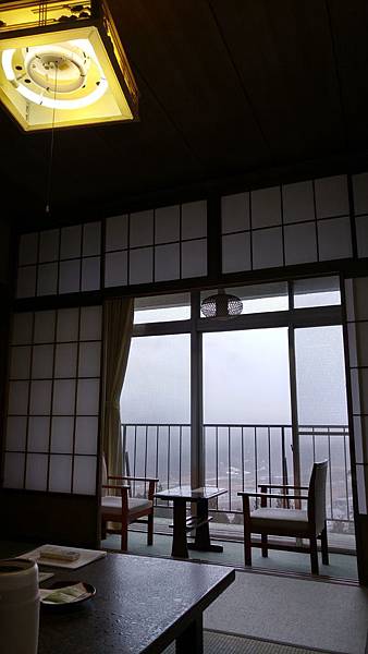 第二層的和室門打開之後就看到落地大玻璃窗,今天有霧在屋裡看不太到外面的景色