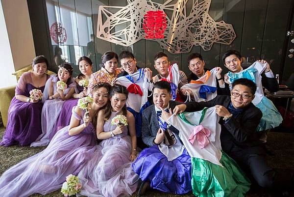 我本身就不是走唯美貴婦路線的新娘,我喜歡搞笑活潑大家有互動,毫無懸念馬上在FB敲檔期。可惜小幫手回覆我檔期只開放一年內的(當時我提早在前一年的9/24就敲了),而且不接午宴快剪,因為影片要至少4小時才可以完成。當下真像晴天被雷劈,但,這可不行~除了他們,我誰都不想要! 跪求小幫手說我可以提早在9點前完成迎娶,敬酒後才播影片。可幸的是老闆小艾有聽到我的呼喚(疑,親自出馬來跟我接洽。他真的很熱心!遠在高雄的他們,願意提早一晚上來,把電腦也帶著在飯店快剪(我要哭了。最讓我感動的是,我問他們當天要不要回高雄趕晚場,小艾說那天只接我一場,因為近的新人一定接的到,但喜歡他們的新人更重要~(已哭!。這麼一個大吉日,願意這樣對待我這個素未謀面的港妹,我真的沒有辦法不愛他!(桃媽不要打我。