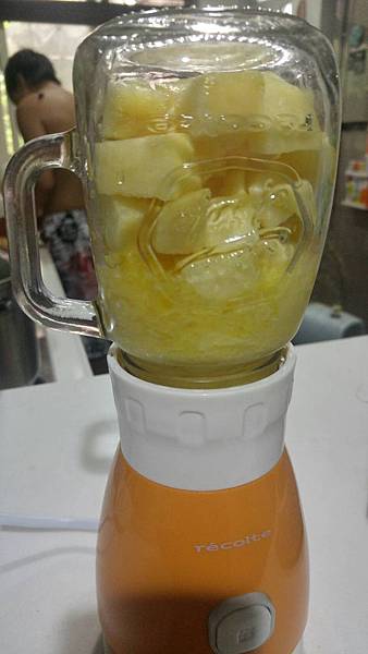 今天早餐的飲料是柳橙蘋果汁,大概介紹一下果汁機使用的步驟: