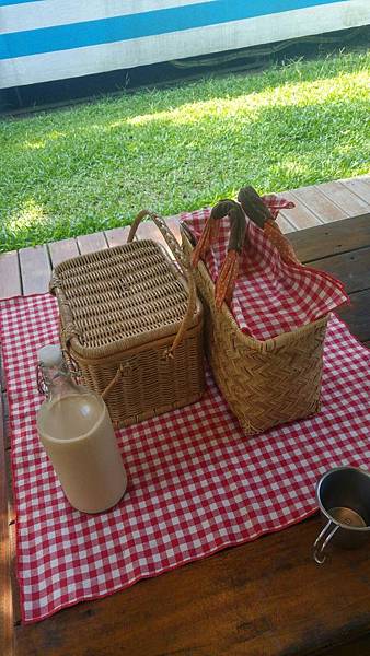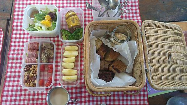 隔天的早餐也很準時8點就送來了,這竹籃和野餐巾好有小紅帽的FU
